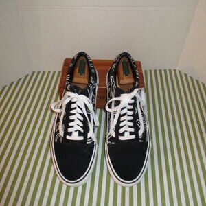 Black with White Paisley Print Canvas, Black Suede Toe-box, White Old Skool Stripes and Laces