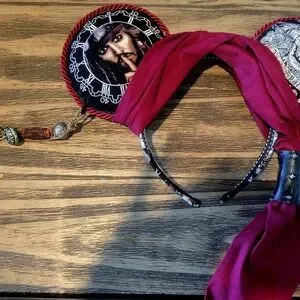 Red and Black Headband with Jack Sparrow - PIRATES OF THE CARIBBEAN