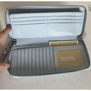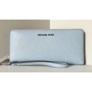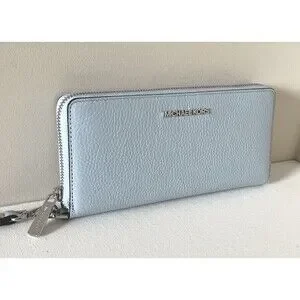 New Michael Kors Jet Set Large Travel Continental Wallet Leather Pale Ocean