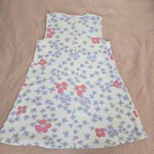 Charming midi dress with a floral pattern. Features pink and blue flowers. Sleeveless design for comfort.