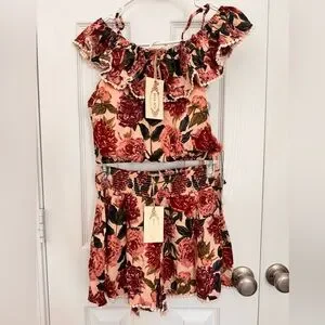 Mia Joy Floral Two-Piece Set with Ruffle Top XS