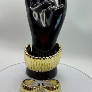 These elegant gold hoop earrings add a touch of sophistication to any outfit. Perfect for any occasion.