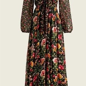 Chic floral maxi dress by J. Crew. Features vibrant blooms on a dark base.