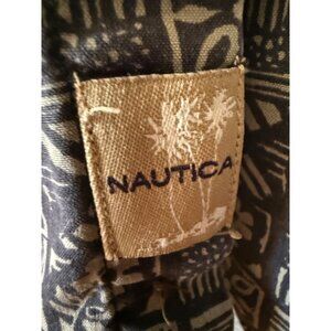 Step back into a time when preppy met tropical with this vintage Nautica silk shirt. Its intricate floral Hawaiian pattern exudes casual elegance, perfect for embracing a laid-back, sophisticated vibe. The soft, breathable silk fabric ensures comfort while its bold design makes a lasting impression. A true nod to y2k fashion.