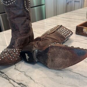Old Gringo SZ 8.5 Studded Brown Leather Cowboy Boots