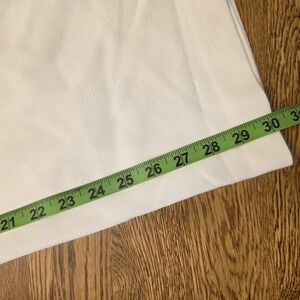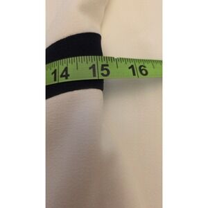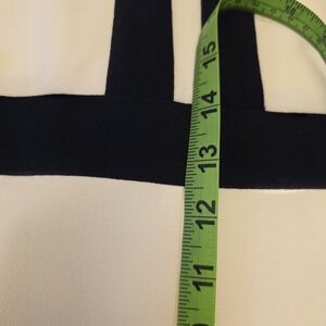 The Vince Camuto Sz 6 White With Black Trim Evening Formal Jumpsuit is a stylish and elegant one-piece outfit perfect for formal occasions or parties. The slim fit design with a wide-leg silhouette and sleeveless style offers a flattering and sophisticated look. Made from a crepe fabric with a touch of spandex for comfort and stretch, this jumpsuit features a black trim accent and a zipper closure. Easy to care for with machine washable instructions, this jumpsuit is a versatile addition to any woman's wardrobe.