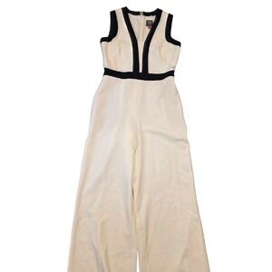 Vince Camuto Sz 6 White With Black Trim Evening Formal Jumpsuit Slimming NWT