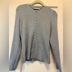 Stay cozy and stylish with this elegant gray button-up sweater. Perfect for any occasion.