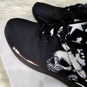Style Tags: gothic sneakers ✦ skull print ✦ alt-core shoes ✦ canvas lace-up ✦ men’s size 10