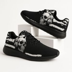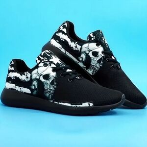 Featuring skull, star, ✦ stripe graphics across a lightweight mesh ✦ canvas silhouette, they bring everyday rebellion to every step.