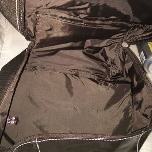 Estée Lauder brown cosmetic bag - rectangular like a train case but soft sided. New and never used, some scuffs in the bottom from sitting in a box. Measures approx 9 x 5 x 5"