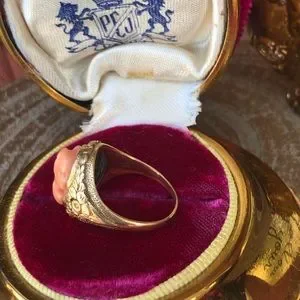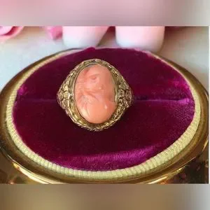 Antique Victorian 1800s 14k solid gold Coral cameo ring carved flowers etched