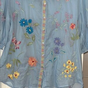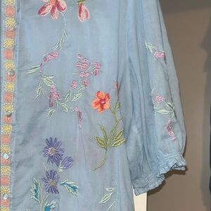 Johnny Was Multicolor Embroidered Blue Blouse