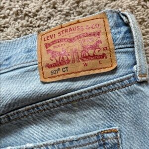 Trendy Levi's boyfriend jeans in light blue. Features distressed details. Ideal for casual wear. Measurements are lying flat tag measurements in photo are different please take note
