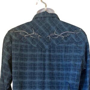 Rock 47 Wrangler Mens Pearl Snap Large LS Embroidered Blue Multi Western Shirt