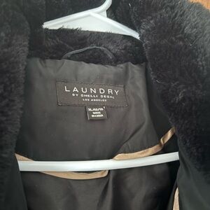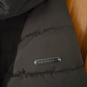 Elegant black puffer coat by Laundry By Shelli Segal. Features a cozy design for warmth and style.