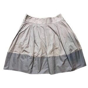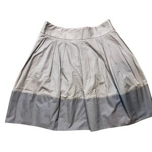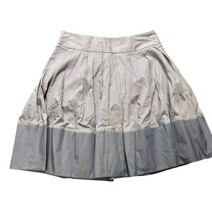 Elevated everyday style from Elevenses for Anthropologie. This chic gray cotton skirt features soft vertical pleating through the body with a subtle contrast colorblock hem for a modern, architectural look. Fully lined for comfort and structure, with a hidden side zip closure for a clean silhouette.