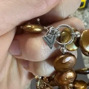 This stunning copper pearl necklace and bracelet set adds a touch of elegance to any outfit. Perfect for special occasions or everyday wear.