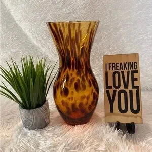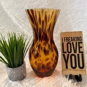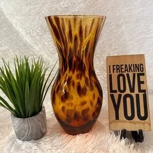 This very pretty made in Italy vase is in perfect condition and does not have any chips or cracks. It features a cool tortoise shell design and is approximately 11.5 inches tall and the opening of the vase is approximately 5 1/4 inches in diameter. The bottom of the vase has the "Made in Italy" sticker.