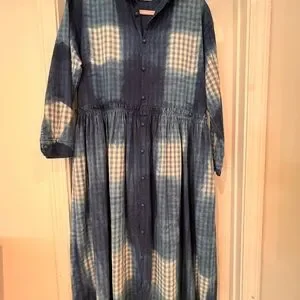 Ichi Antiquities Indigo Gingham dress. Hand dyed indigo, cotton/linen blend. One size. Absolutely stunning dress! Lightly worn, like new condition. Made in Japan.