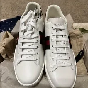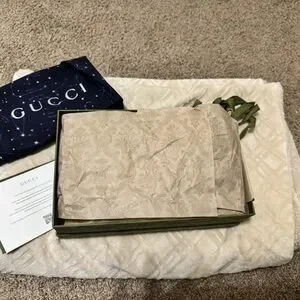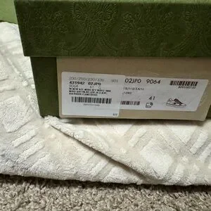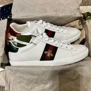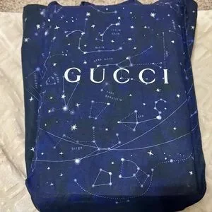Stylish Gucci athletic shoes. Features a blue constellation tote bag included. Perfect for casual wear.
