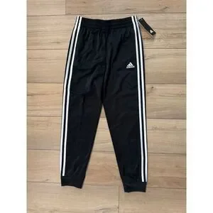 adidas Iconic Black 3 White Stripe 2 Pocket Jogger Pants Boys Medium 10 12 NWT