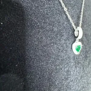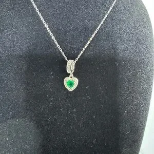 This elegant silver necklace features a stunning green heart pendant, perfect for adding a touch of sophistication to any outfit. Ideal for both casual and formal occasions.