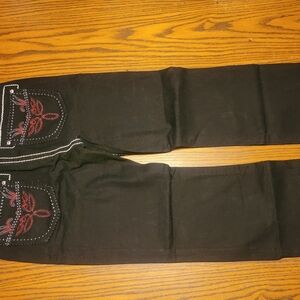Elevate your style with these elegant black jeans featuring striking red embroidery. Perfect for making a fashion statement. New Never worn.