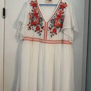 Savanna Jane White Dress with Red Floral Embroidery