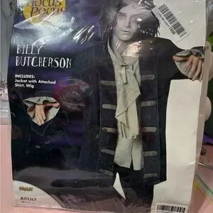Disney's Billy Butcherson costume. Includes black jacket with attached cream shirt and wig. Perfect for fans.