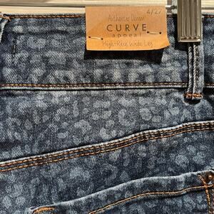 Curve Appeal Womens Size 4 Leopard Denim High Rise Wide Leg Jeans NWT
