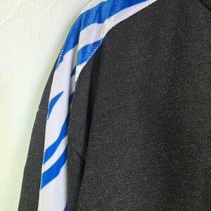 Stylish black hoodie featuring vibrant blue accents. Perfect for casual outings.