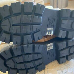 Stylish tan/ light brown combat boots. Lace-up design. Chunky black soles.