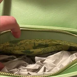 This Loungefly Tiana mini backpack is gorgeous! I love it so much but knew I would never wear anything remotely stylish enough to go with it. This is one of the first Tiana bags I ever saw. It’s new, never used. It came from Loungefly without a plastic bag unfortunately, but will be stored in one from here on out. There is a slight scuff on the side of the bag (see photos) which might come off with a magic eraser. I’m not taking that chance since I’m not keeping the bag. All the details are gorgeous, from the embroidered water lily to the frog pull charm to the individually stitched sequins. It’s a bag fit for a princess!