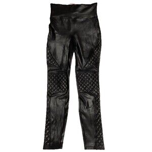 Spanx Small Faux Leather Moto Quilted Leggings Black Womens S