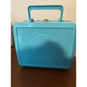 Step into nostalgia with this bright blue Wizard of Oz lunchbox set from 1989, celebrating the film’s 50th anniversary. Made by Aladdin, this vintage set includes: