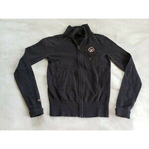 Hurley VTG Jacket Women Size XS Dark Gray Long Sleeve Mock Neck Logo Full Zip