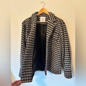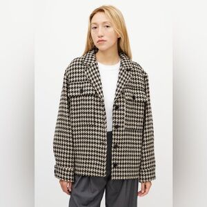 Anine Bing Flynn Houndstooth Woven Knit Collared Button Down Up Jacket Coat Shacket