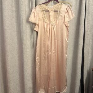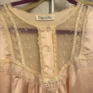 Vintage Christian Dior silk night gown lace ruffle bow feminine light pink large