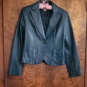 100% genuine leather teal blazer jacket.