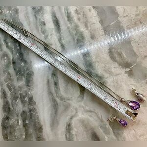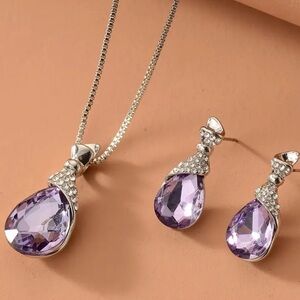 This elegant jewelry set features a stunning silver and purple amethyst design, perfect for adding a touch of sophistication to any outfit. The set includes a beautifully crafted necklace and matching earrings, ideal for special occasions or everyday wear.