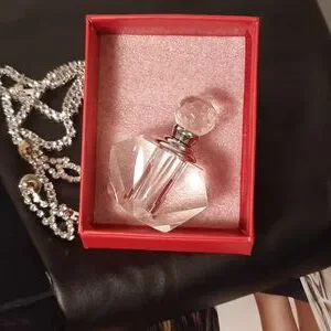 Perfume Bottle w/dauber and stopper. Great for those precious fragrant oils. Glass stopper is silver finished. Bottle stands about 2 inches .