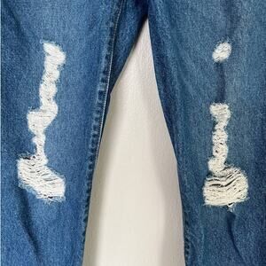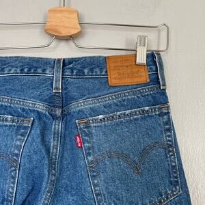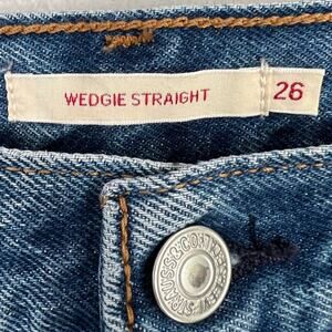 Levis Premium Wedgie Straight Jeans Women's 26 Button Fly Blue Wash Distressed