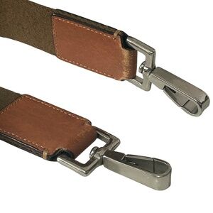 Detachable strap with silver tone hardware, adjustable strap is long enough to be worn cross body (approximately 43", not including hardware)