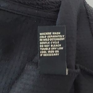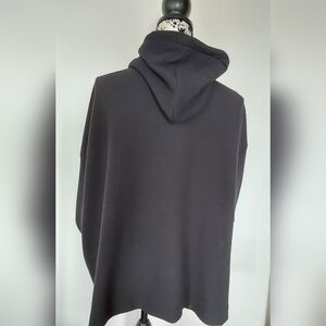 Black textured knit comparable to a waffle knit. Zip front hoodie with a drop shoulder, large front pockets. Cropped wide leg pull on elastic pant. Could fit an XL due to being an unconstructed design. Machine wash.