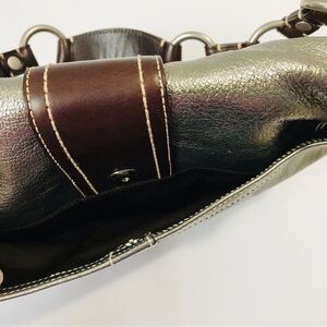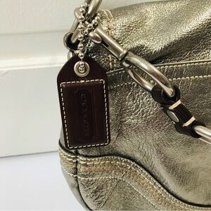 Beautiful leather metallic silver coach handbag can also be worn as a clutch