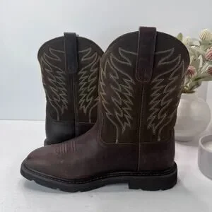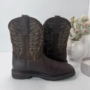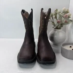 Ariat Groundbreaker Wide Square Toe Work Boots Mid Calf Brown Mens Size 7EE NEW