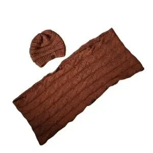 Stay warm and stylish with this cozy burnt orange knit infinity scarf and hat set. Perfect for adding a touch of elegance to your winter wardrobe.
