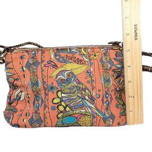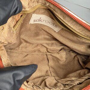 3. Sakroots tribal print canvas convertible zip pouch w/beaded accents. Excellent condition w/ light cracking on faux leather trim around zipper. Paint on strap is peeling but the strap itself is fine. Lined interior has zip closure, 1 zip pocket & 2 slip pockets