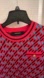 Elegant Versace dress with vibrant red and blue pattern. Perfect for any occasion.